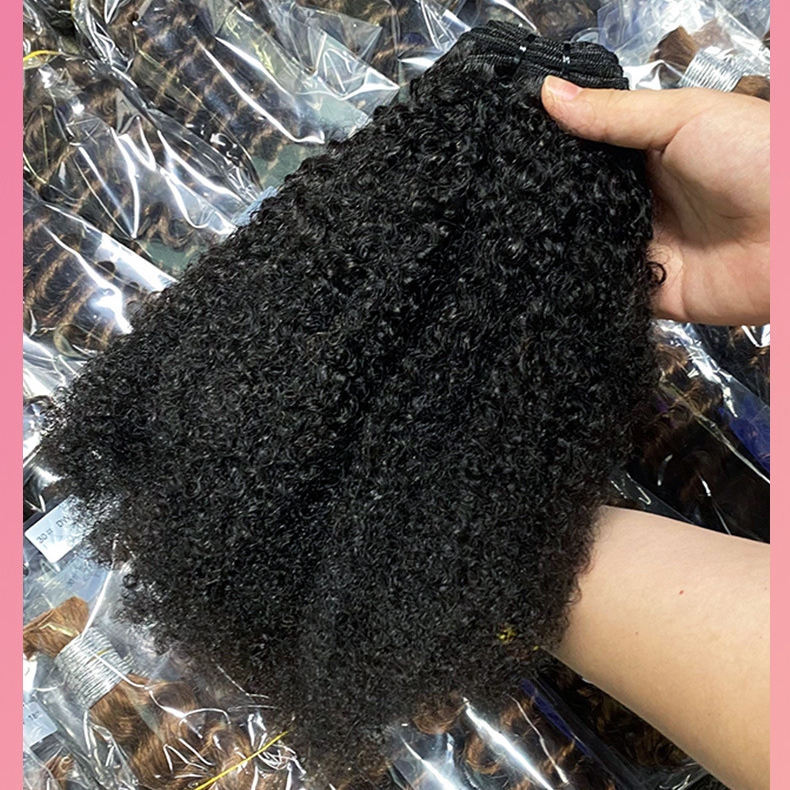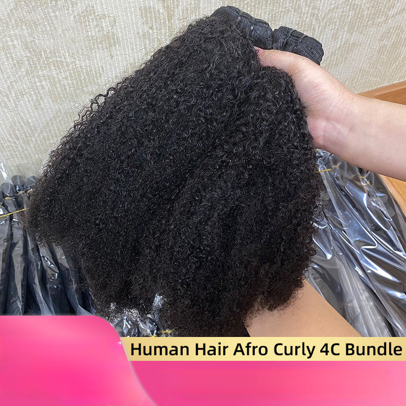 Pacchetti di Lusso di Capelli Veri 4C, Parrucca di Capelli Umani Ricci Crespi, Ciocche di Capelli Umani