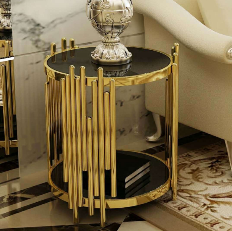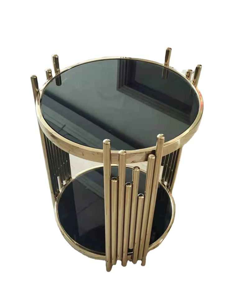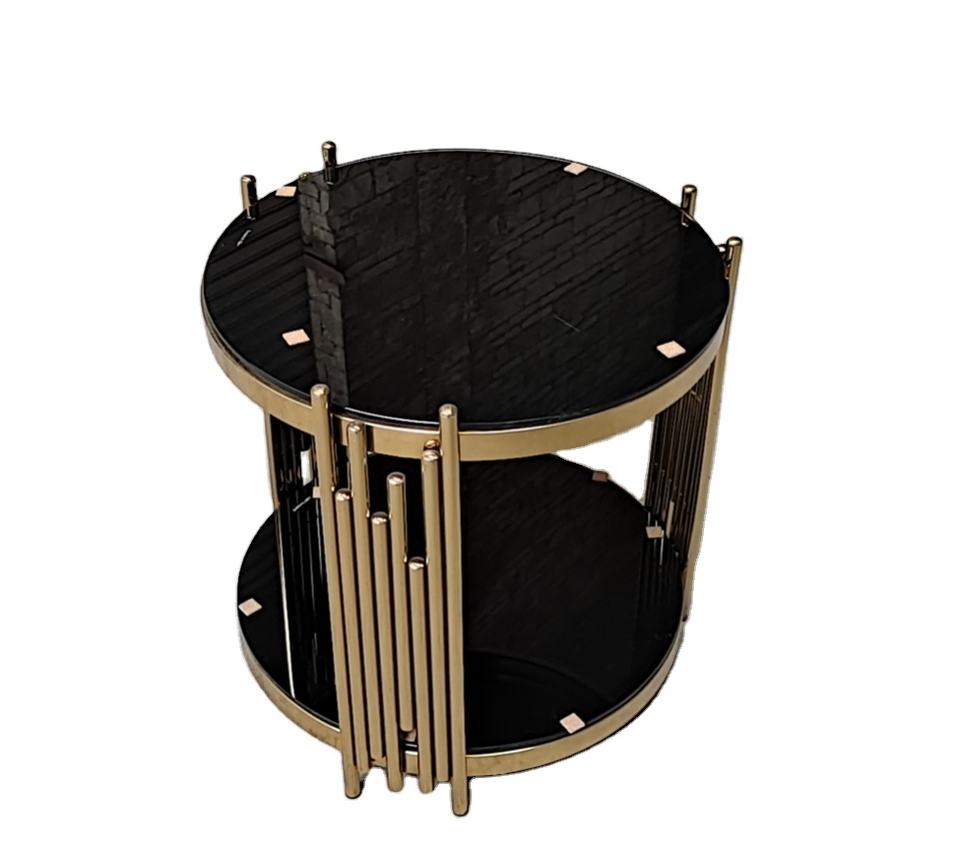Luxury Fashional Stainless Steel Round End Table Black Tempered Glass Brass Gold Accent Side Table