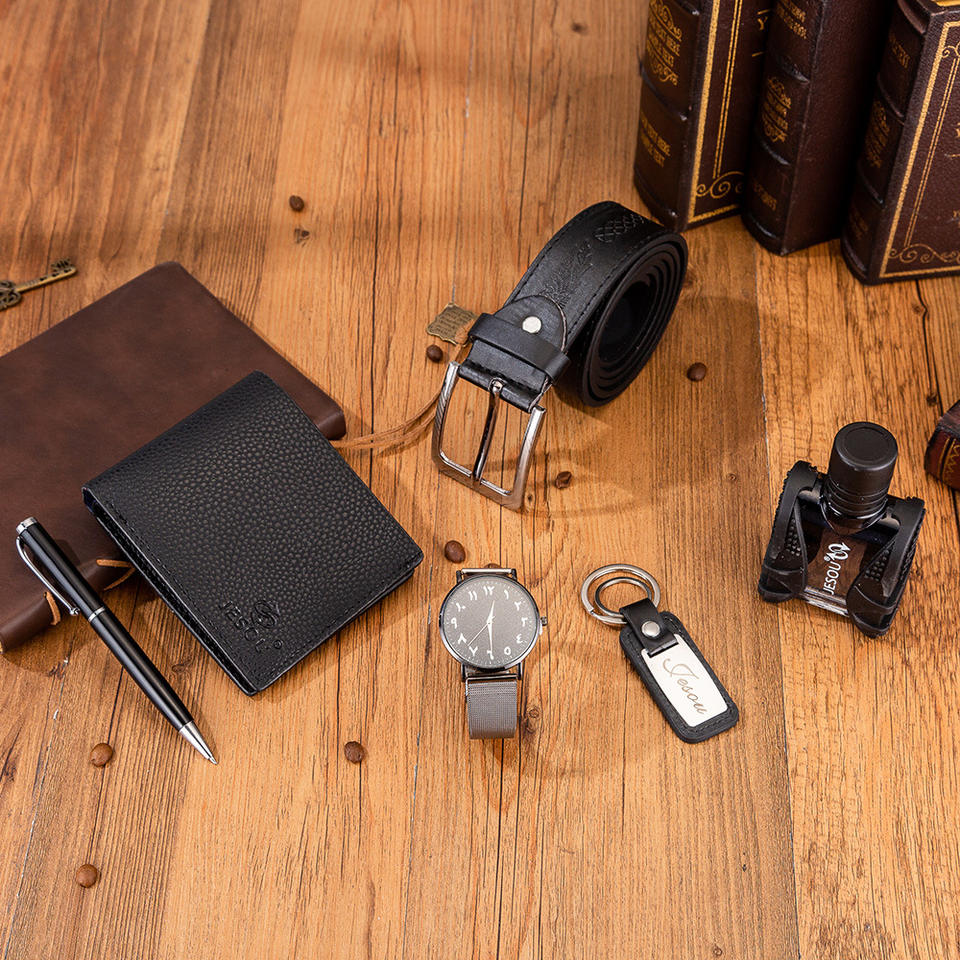 Set Regalo di Lusso per la Festa del Papà JESOU Omaggi Promozionali Squisiti Portafoglio/Portachiavi/Cintura Profumo Orologio Set Regalo di Compleanno per Uomo