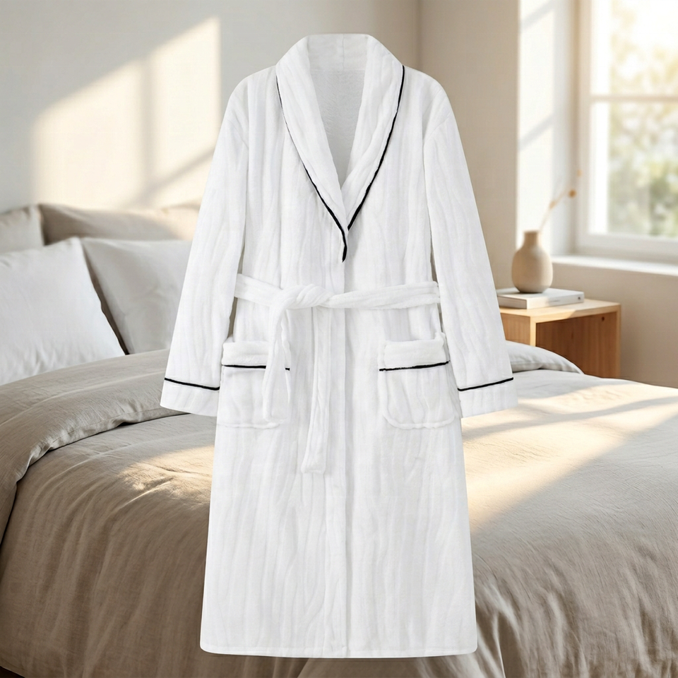 Accappatoio di Lusso in Pile con Collo a Scialle Personalizzabile per Uomo e Donna, Uso Domestico e Alberghiero