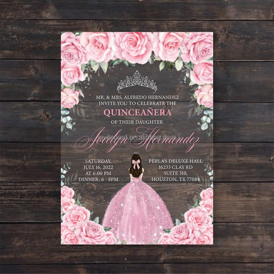 Luxury Floral Printing Champagne Inivitaciones De Xv Anos Dresses Sweet 15 Party Bridal Greeting Invitation
