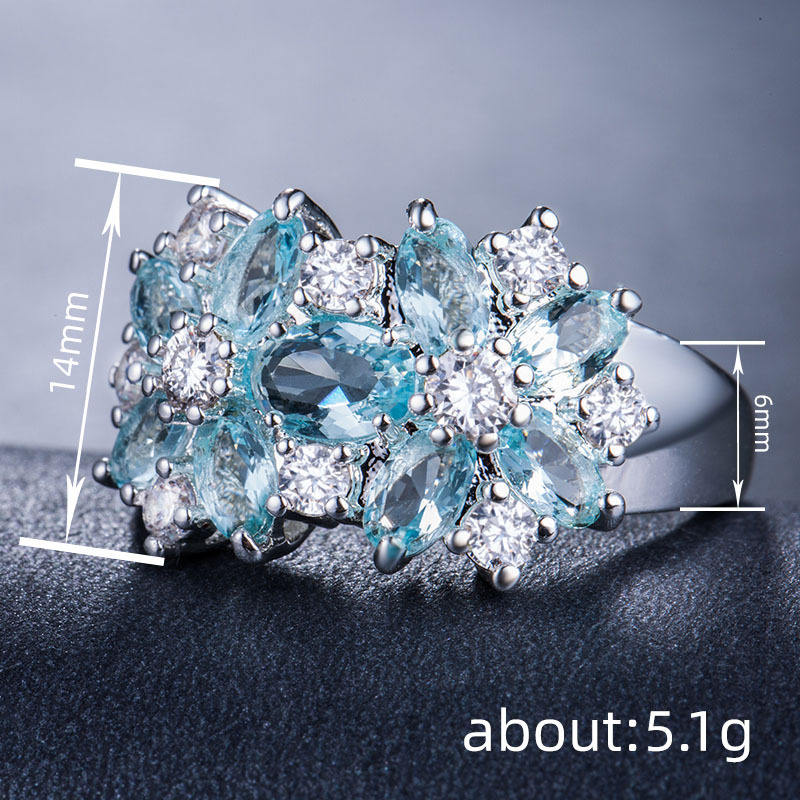 Luxury Flower Cluster Ring Women's Oval Cut Crystal Rhinestone Prong Setting Party Fine Jewelry A034