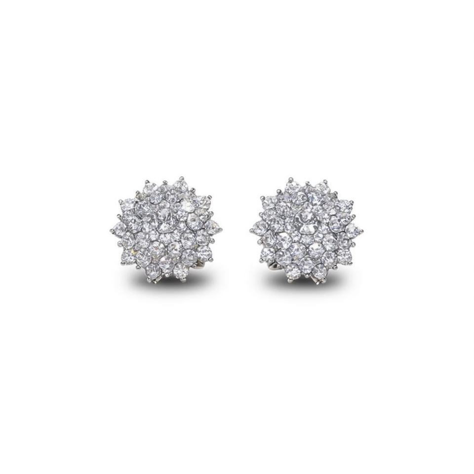 Luxury Flower Stud Earrings 925 Silver Crystal Rhinestone Claw Setting Women's Wedding Jewelry