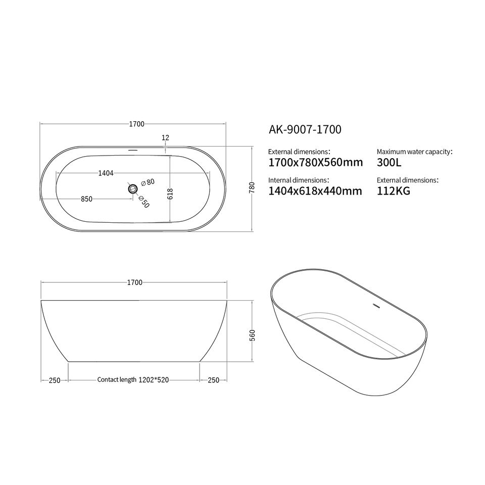 Vasca da Bagno Ovale Freestanding di Lusso in Solid Surface, Vasca in Pietra Artificiale per Villa