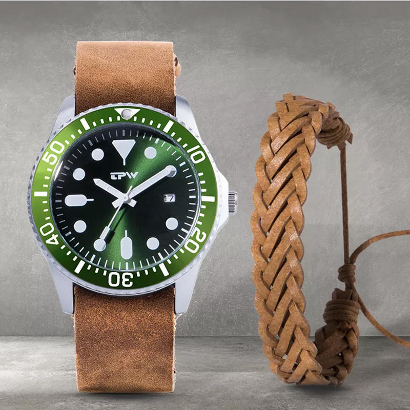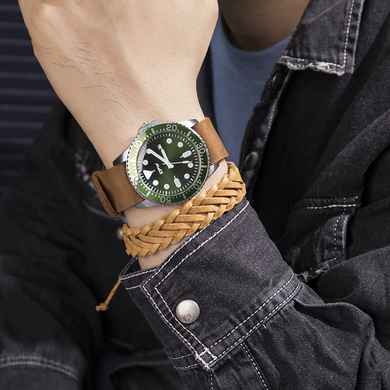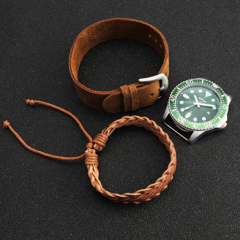 Luxury Genuine Leather Strap Wristwatches Luminous Green Male Jewellery Accessory Watches for Men