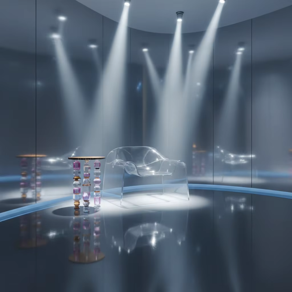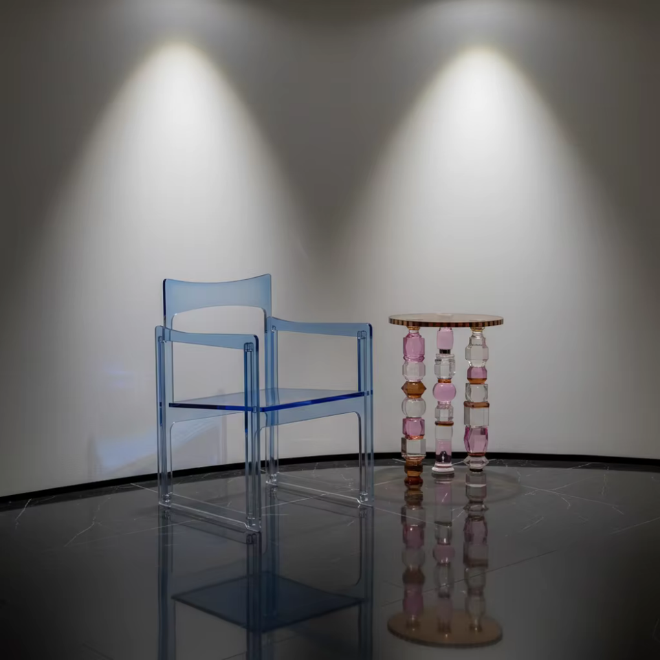 Tavolino Laterale di Lusso con Cristalli Geometrici | Tavolino da Caffè in Acrilico Tagliato a Mano con Motivo Azalea per Arredamento di Design e Interni di Hotel di Lusso