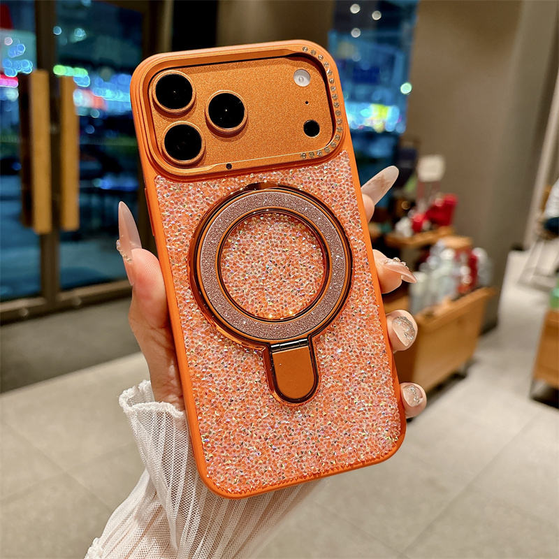 Custodia di Lusso Glitterata Magnetica con Supporto per iPhone 17 16 Pro Max, Cover Posteriore con Diamanti e Protezione Lente Fotocamera Bling