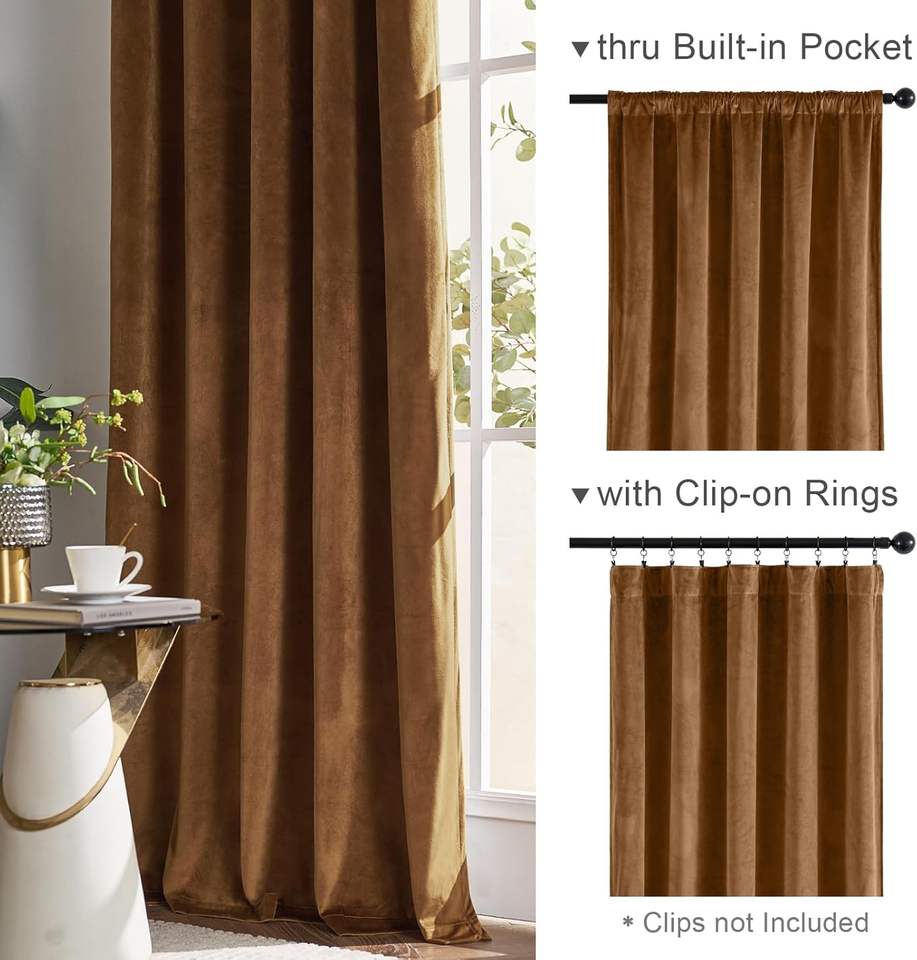 Marrone Oro di lusso Asta da tasca 120 pollici Extra lungo isolamento termico marrone tende in velluto oscurante 2 pannelli