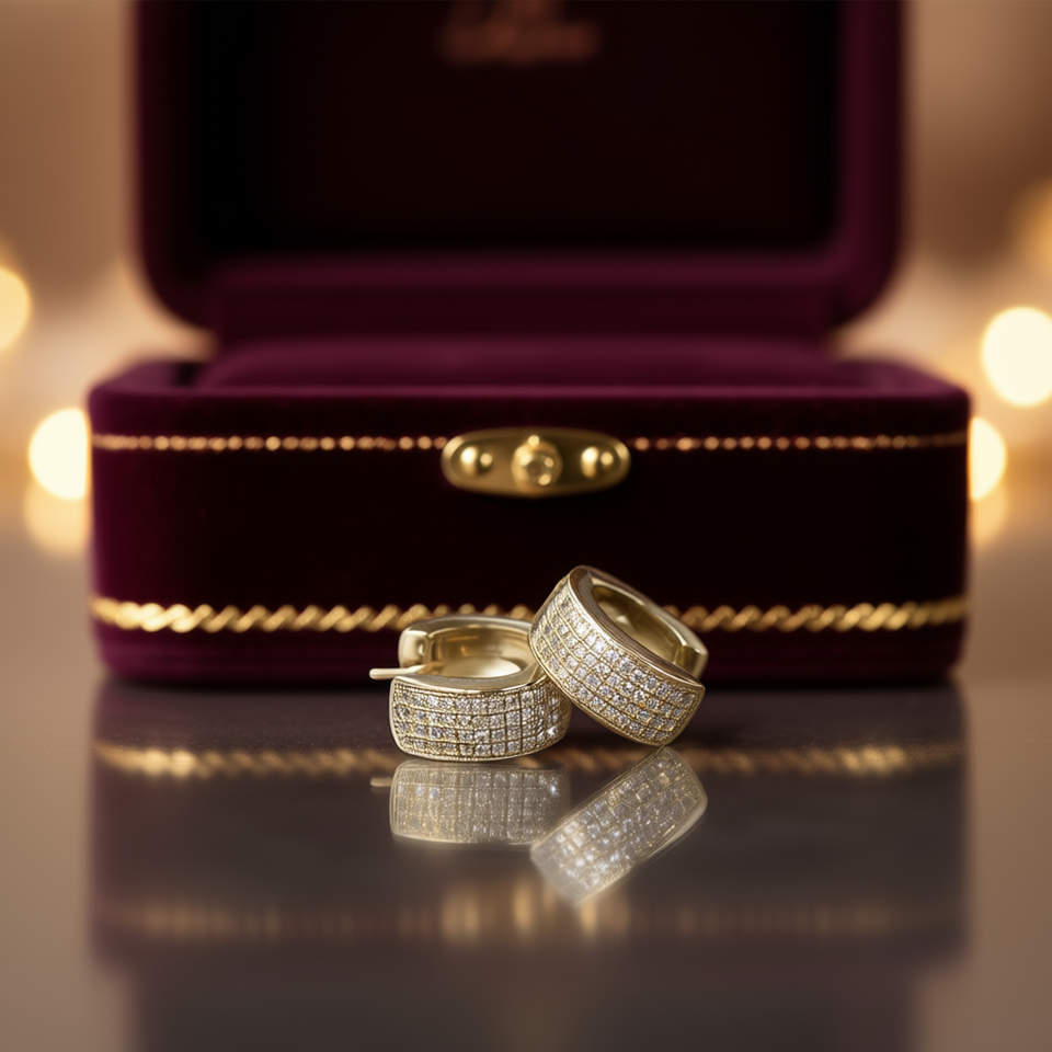 Luxury Gold Diamond Huggie Earrings Women's Round Brilliant Cut G Color Natural Everyday Wear Fine Jewelry