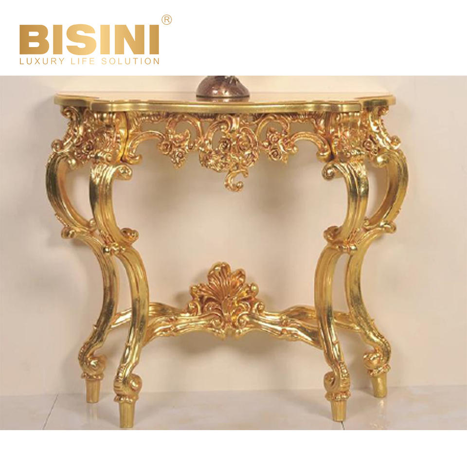 Consolle di Lusso in Resina con Foglia d'Oro, Stile Barocco Antico con Piano in Marmo Naturale per Ingresso, Soggiorno e Hotel