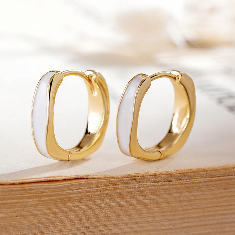 Luxury Gold Plated Hoop Earrings White Geometric Minimalist Design Unisex Everyday Wear Fine Jewelry 22k Plated