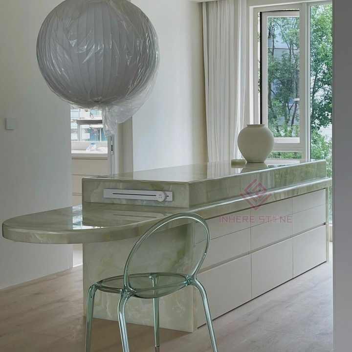 Nome del prodotto:Controsoffitto di lusso isola cucina in marmo onice verde giada traslucido
