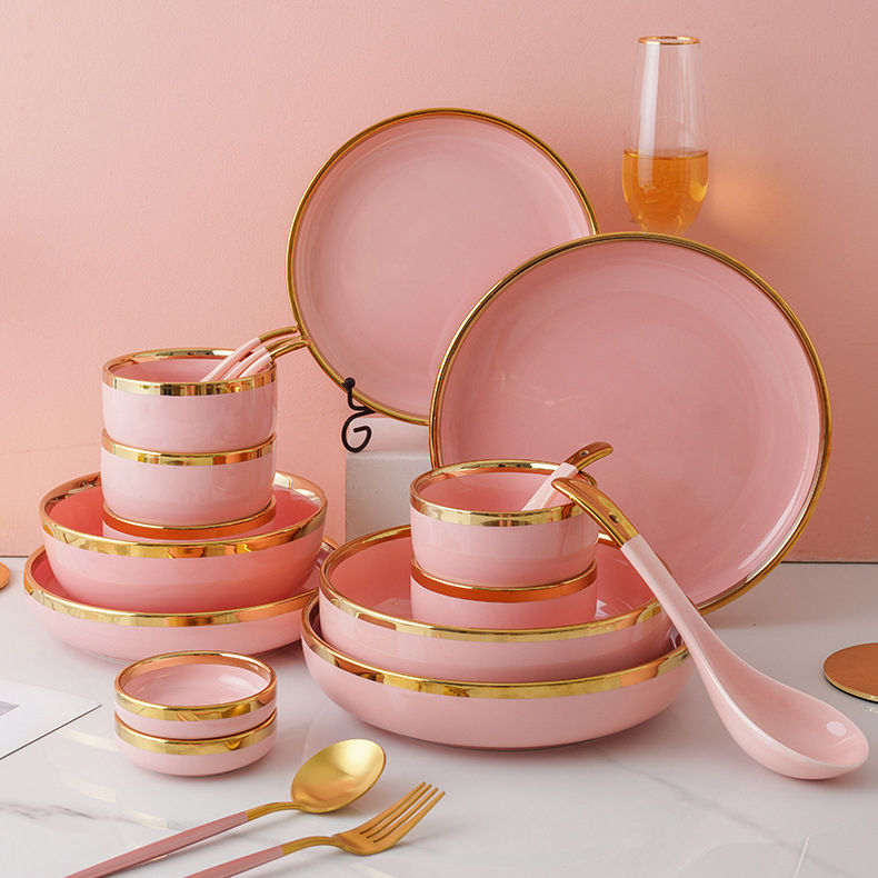 Set da Pranzo di Lusso Verde e Dorato in Porcellana, 26 Pezzi in Ceramica Bone China per 6 Persone
