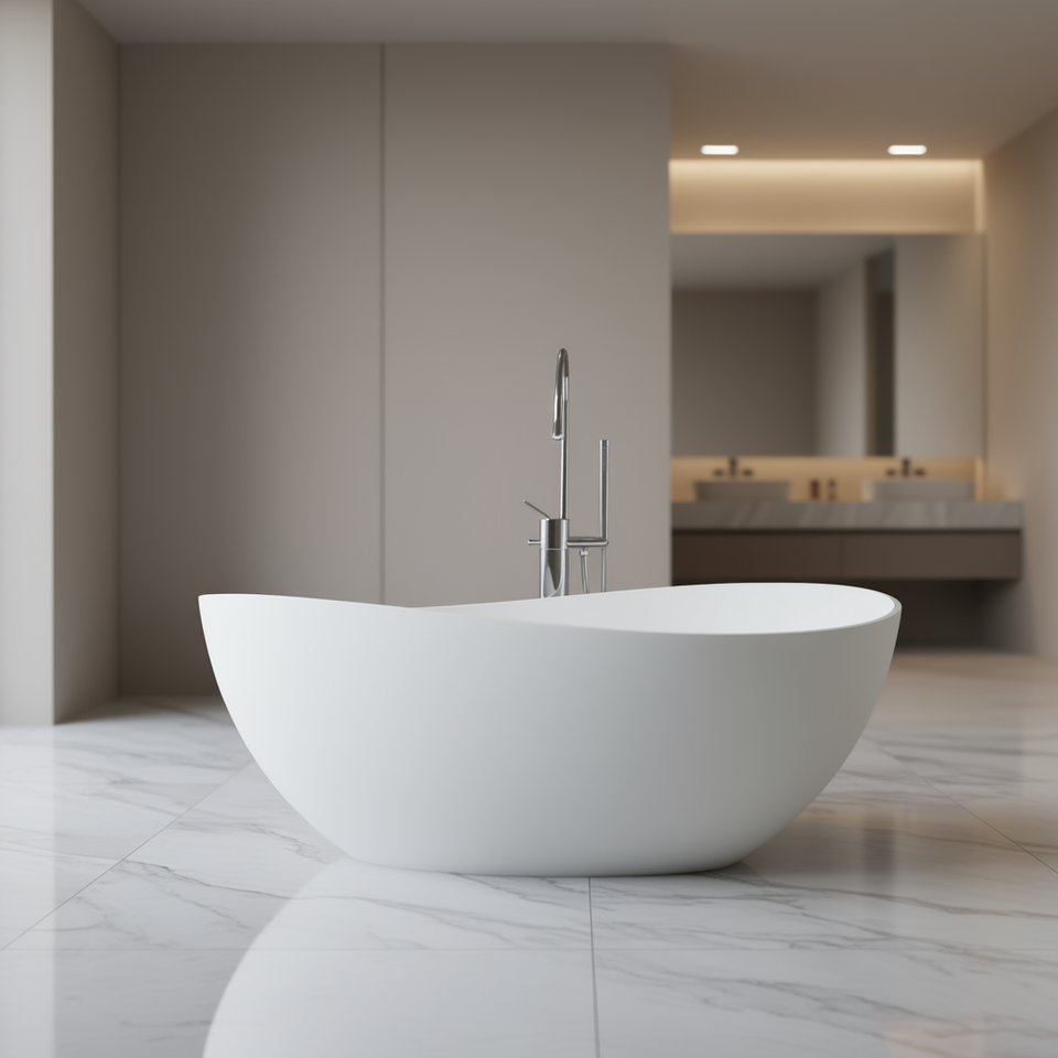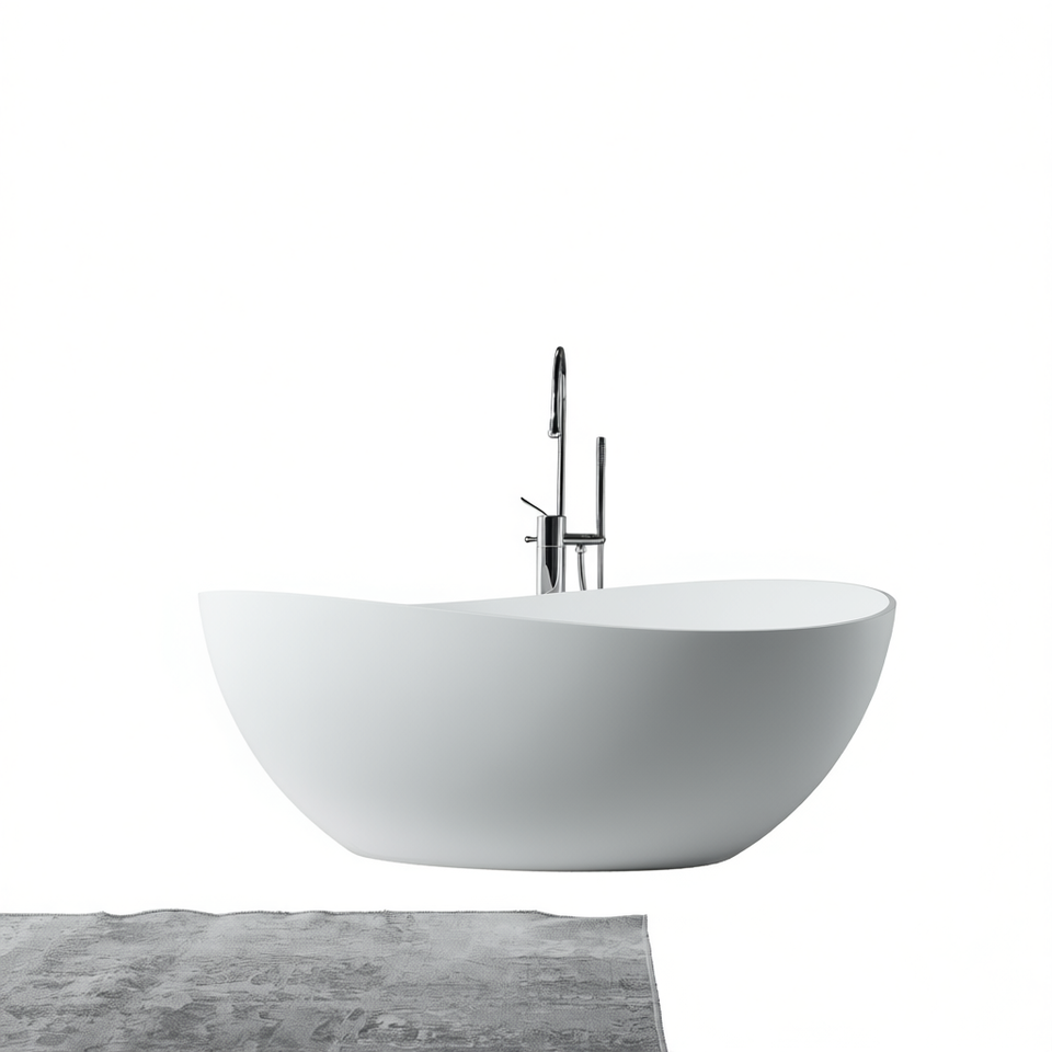 Vasca da Bagno Freestanding in Resina di Pietra, Bianco Opaco, Forma Irregolare, Vasca di Lusso per Bagno