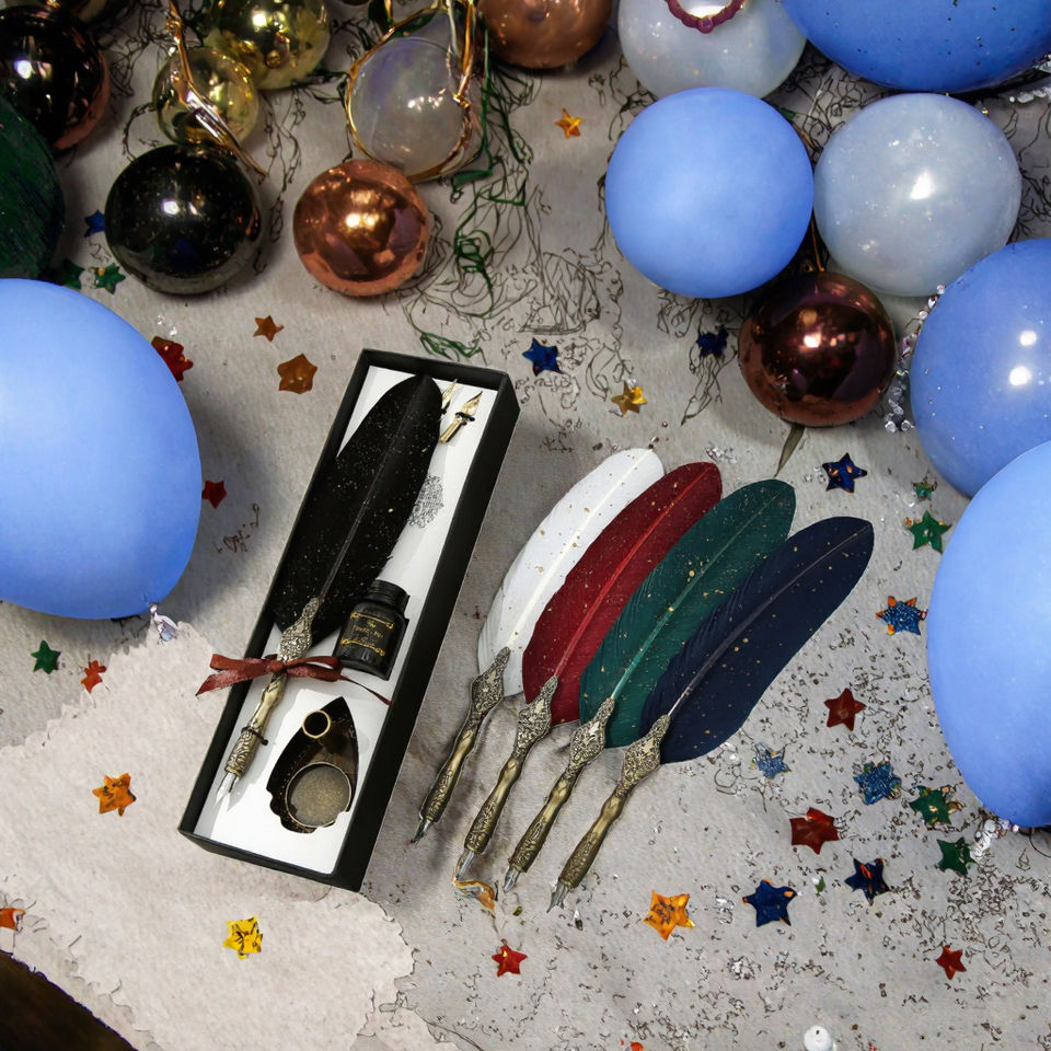 Luxury Handmade Business Gift Set Quill Pen Stainless Steel Nib Pen Holder Personalized Ink for Corporate Offices Office Feather