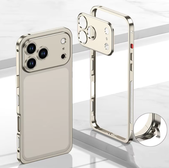 Custodia per telefono di lusso con telaio metallico per dissipazione del calore per iPhone 17 Air 16 15 14 13 Pro Max, cover posteriore con protezione indipendente per la fotocamera