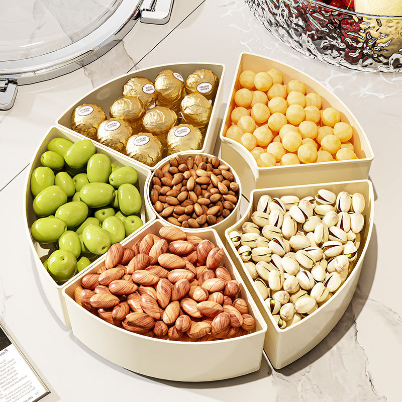 Luxury High-End Fruit Plate 2025 Lid Compartments Modern Home Living Room Coffee Table Snack Candy Display Storage Box Kitchen