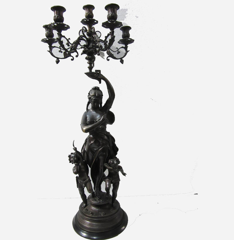 Candelabro di Lusso in Stile Francese Antico in Bronzo con Sculture di Venere e Putti, Portacandele Ornato a 5 Bracci