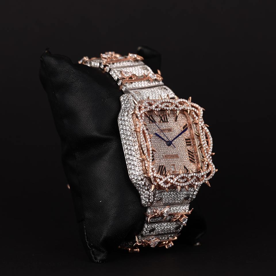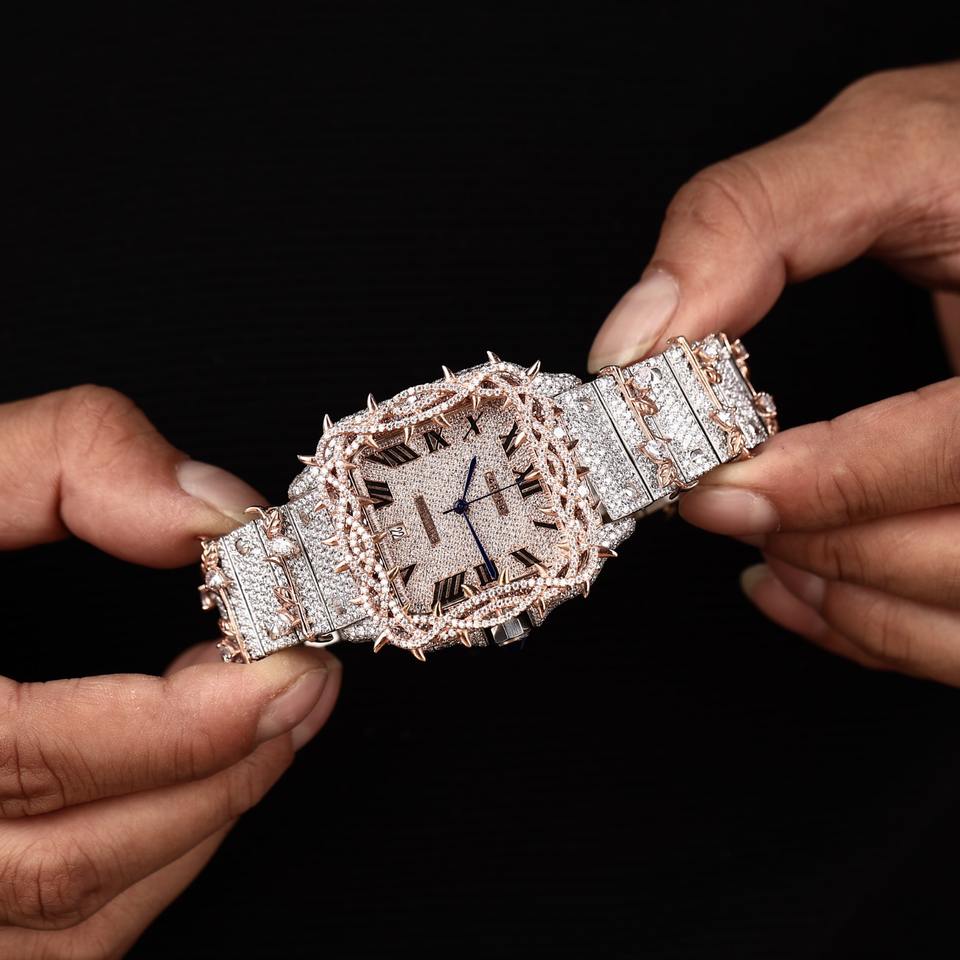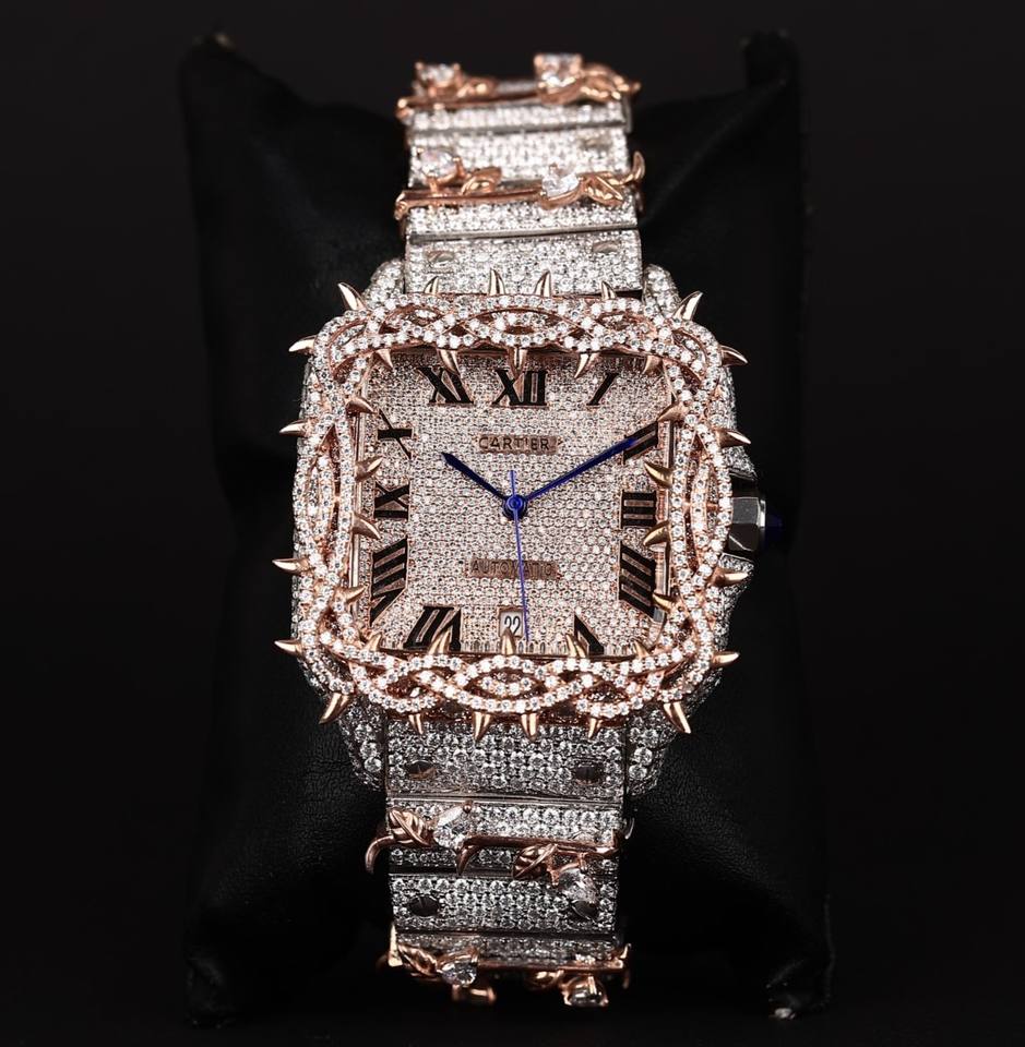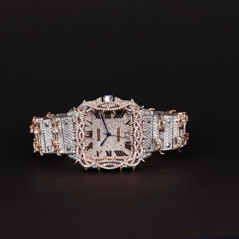 Orologio di Lusso con Diamanti per Uomo, Quadrante Quadrato con Lunetta a Spine e Bracciale Bicolore, Elegante per Uso Quotidiano