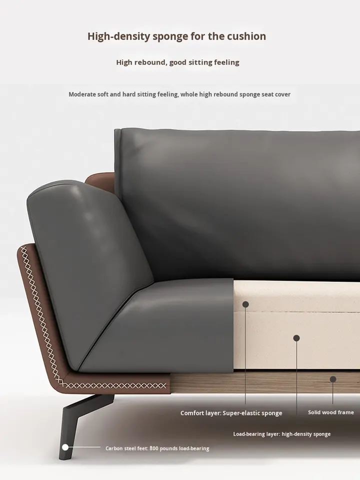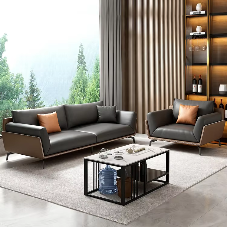 Luxury Italian Genuine Leather Office Sofa Set, Modern 3-Seater Sectional Reception Couch with Coffee Table for Business Lobby