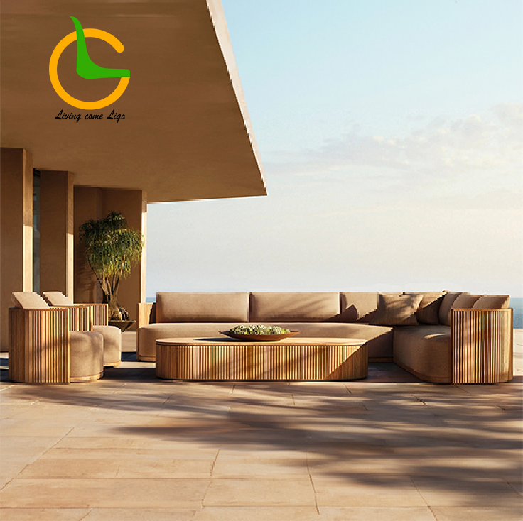 Luxury L-shaped Wood Couch Sofa Set Waterproof Teak Outdoor Furniture Durable Living Room Suitable Garden or Outdoor Furniture