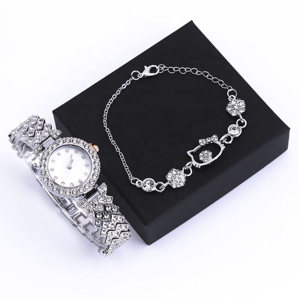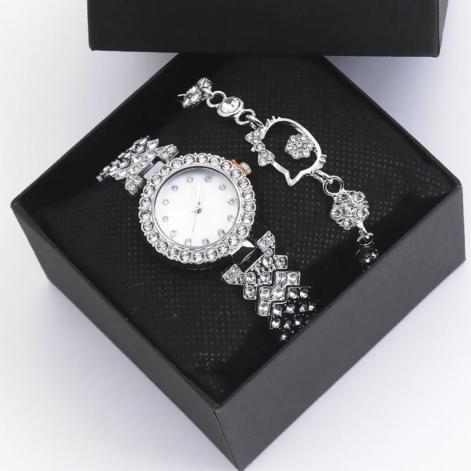 Set di Orologio e Bracciale di Lusso da Donna, Orologi al Quarzo in Lega con Cristalli e Gioielli a Forma di Gatto con Fiocco per Vendita all'Ingrosso B2B
