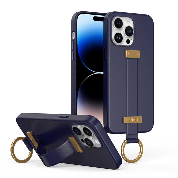 Luxury Leather Case Wrist Hand Strap Cell Phone Case with Microfiber Stand Metal Ring Holder Cover for iPhone 14 Pro Max