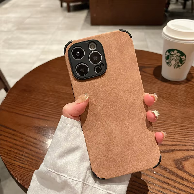 Custodia per Telefono in Pelle di Lusso TPU per iPhone 16 15 14 13 12 11 Pro Max Mini X XS XR, Cover in Silicone Morbido Colore Solido Retrò