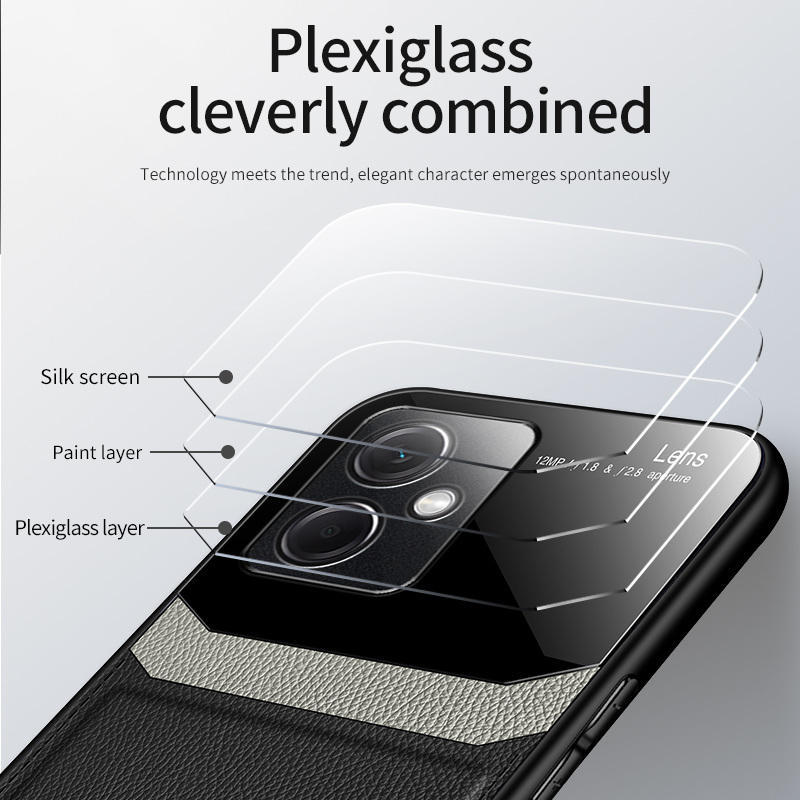 Cover per telefono di protezione con lenti in Plexiglass di lusso in pelle per Xiaomi Redmi Note 12 11 10 9 8 Pro 12S 10X 11E Cover posteriore