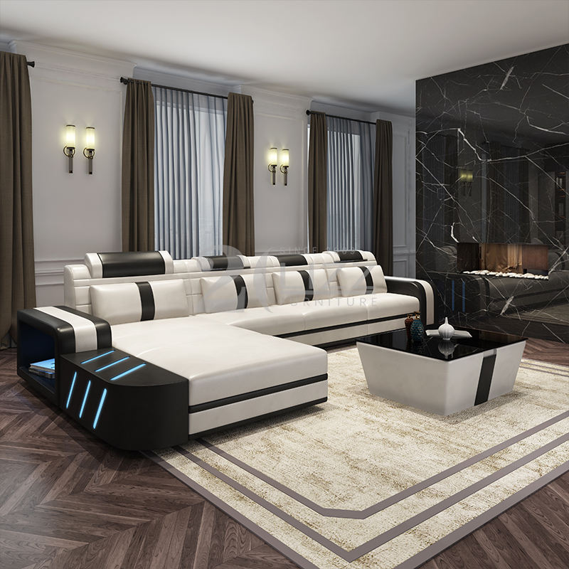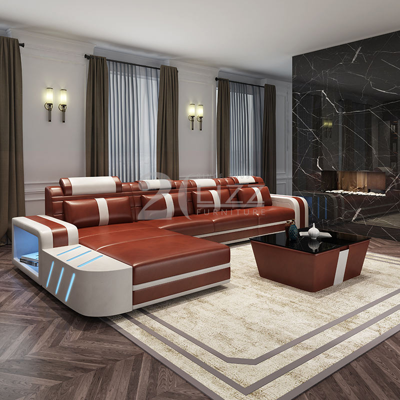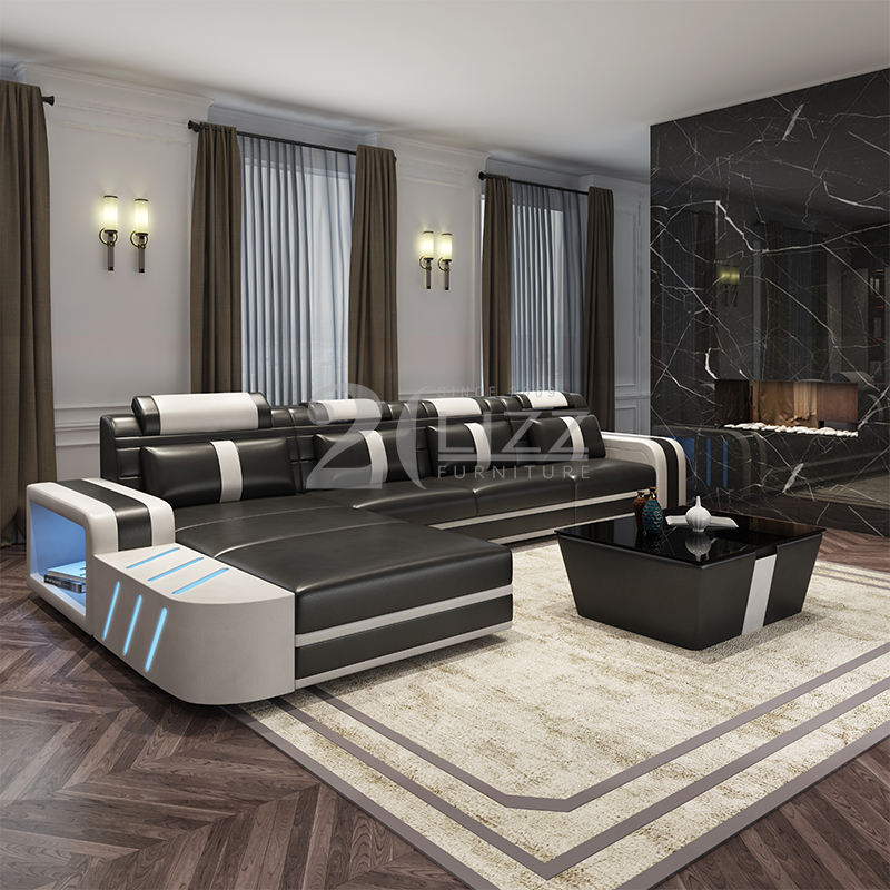 Luxury Leisure Chaise Lounge Furniture Led Corner L Shape Sofa Leather
