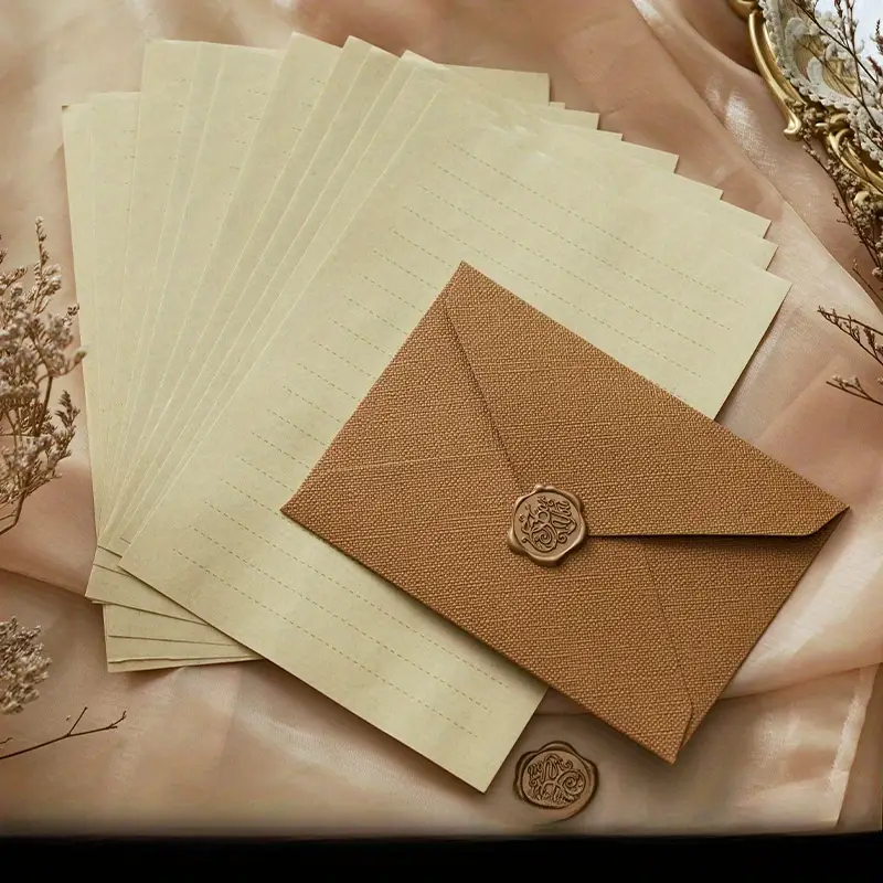 Set di Lusso di Buste e Lettere in Lino con Sigilli in Cera, Perfetto per Regali Fai-da-Te, Inviti di Nozze e Uso in Ufficio