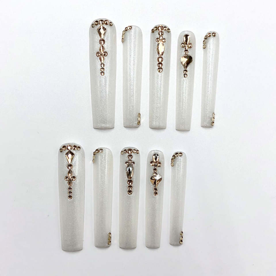 Lunga bara di lusso bianco Chic Aura stampa ABS acrilico Nails Set elegante Aura Aura Aura Aura Aura Aura Aura Aura Aura Aura