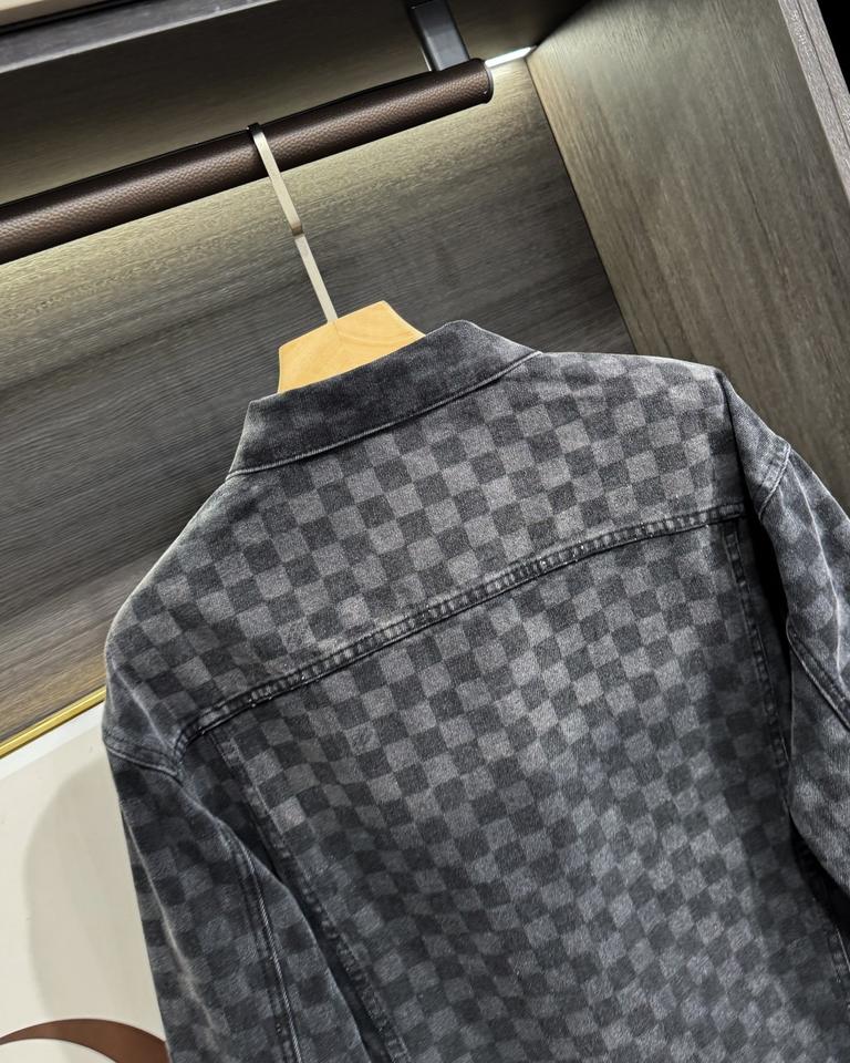Luxury Louis Denim Damier Fusion Deconstructs Vuitton Casual Formal Wear Statement Piece Check Print Jean Jacket For Men