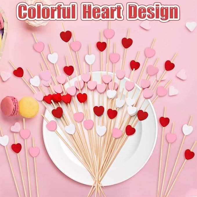 Stuzzicadenti di Lusso a Forma di Cuore in Bambù, Uso Decorativo, Spiedini di Bambù Monouso per Hotel 5 Stelle, Confezione Romantica