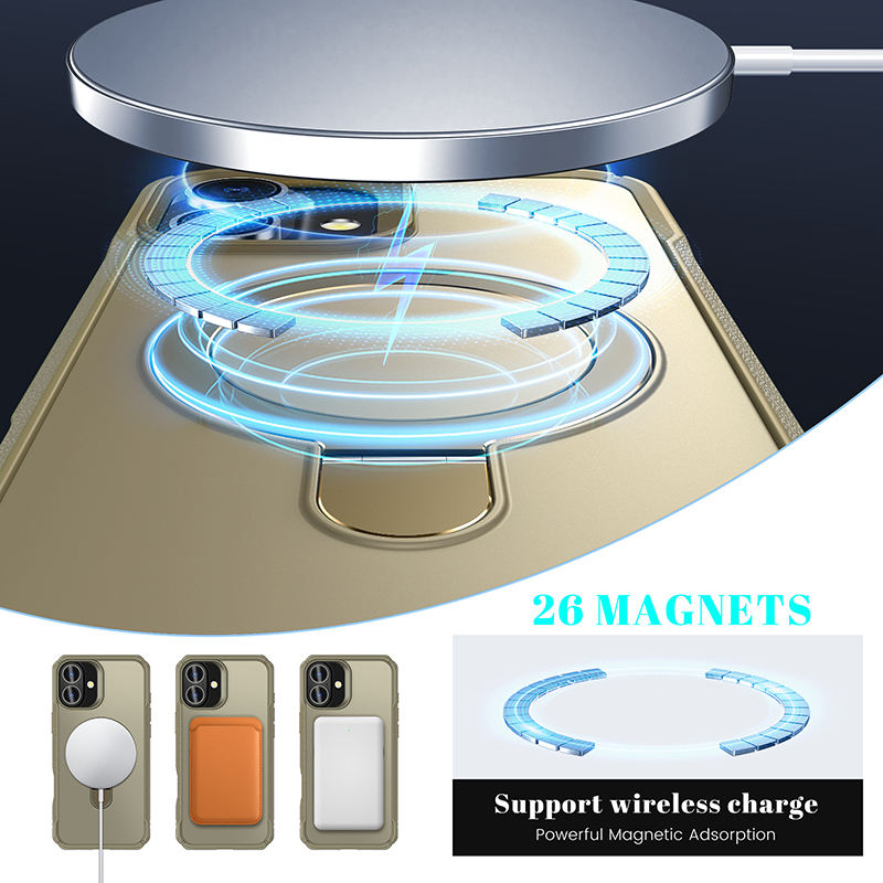 Custodia per telefono con staffa in metallo di lusso per iPhone 16 17, cover per telefono con supporto magnetico invisibile per iPhone 16 15 14 13 12 Pro