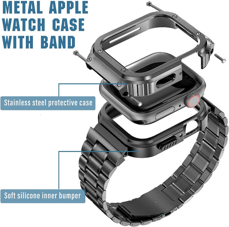 Custodia protettiva per paraurti robusta in metallo di lusso con cinturino in acciaio inossidabile I per Apple Watch Band Case 45mm 44mm