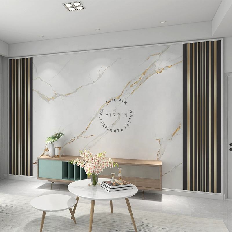Strisce di metallo di lusso papier peint marbre per TV sfondo decorazione della parete del salotto