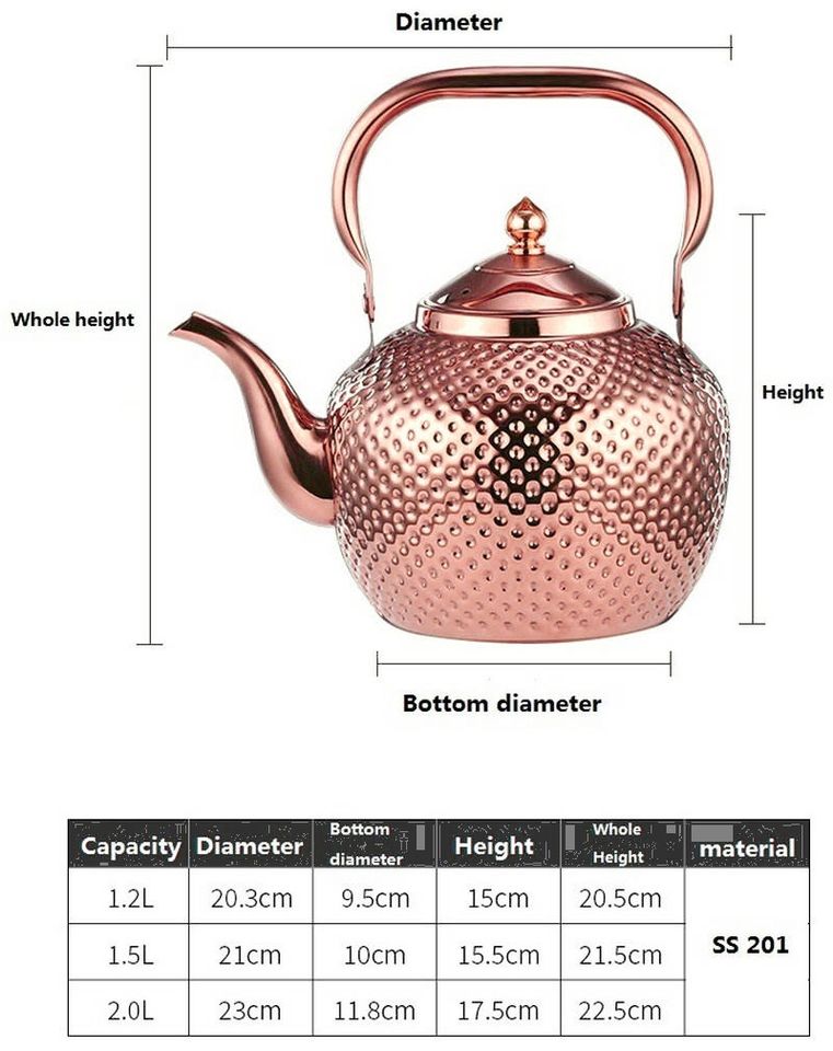 Brocca sferica martellata in acciaio inossidabile di lusso in stile arabo medio 1.2/1.5/2.0L bollitore per l'acqua teiera per fornello a induzione per uso domestico