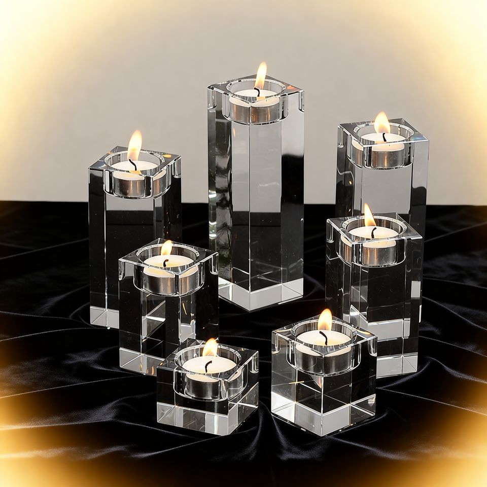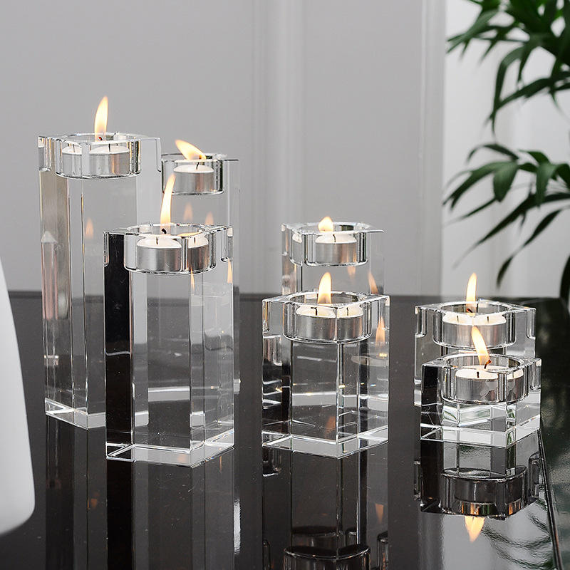 Luxury Minimalist Crystal Transparent Small Candle Holder, Wedding Decoration Creative, 3D Laser Engraved Blank Candle Holder.