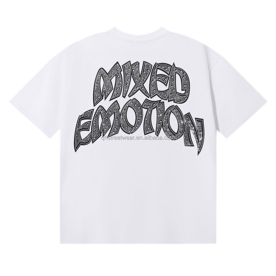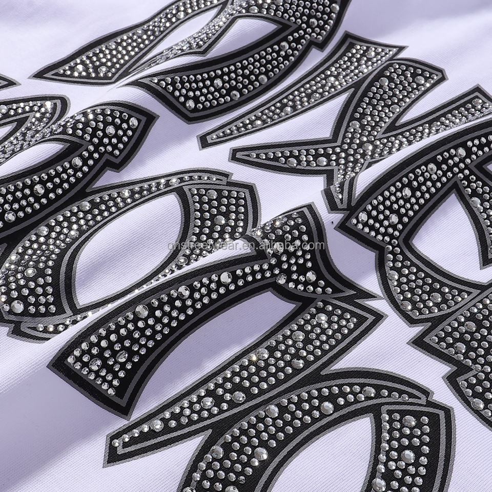 T-shirt da uomo di lusso con grafica Ali d'Angelo e stampa di lettere con strass, stile Y2K Hip Hop High Street, bianca oversize