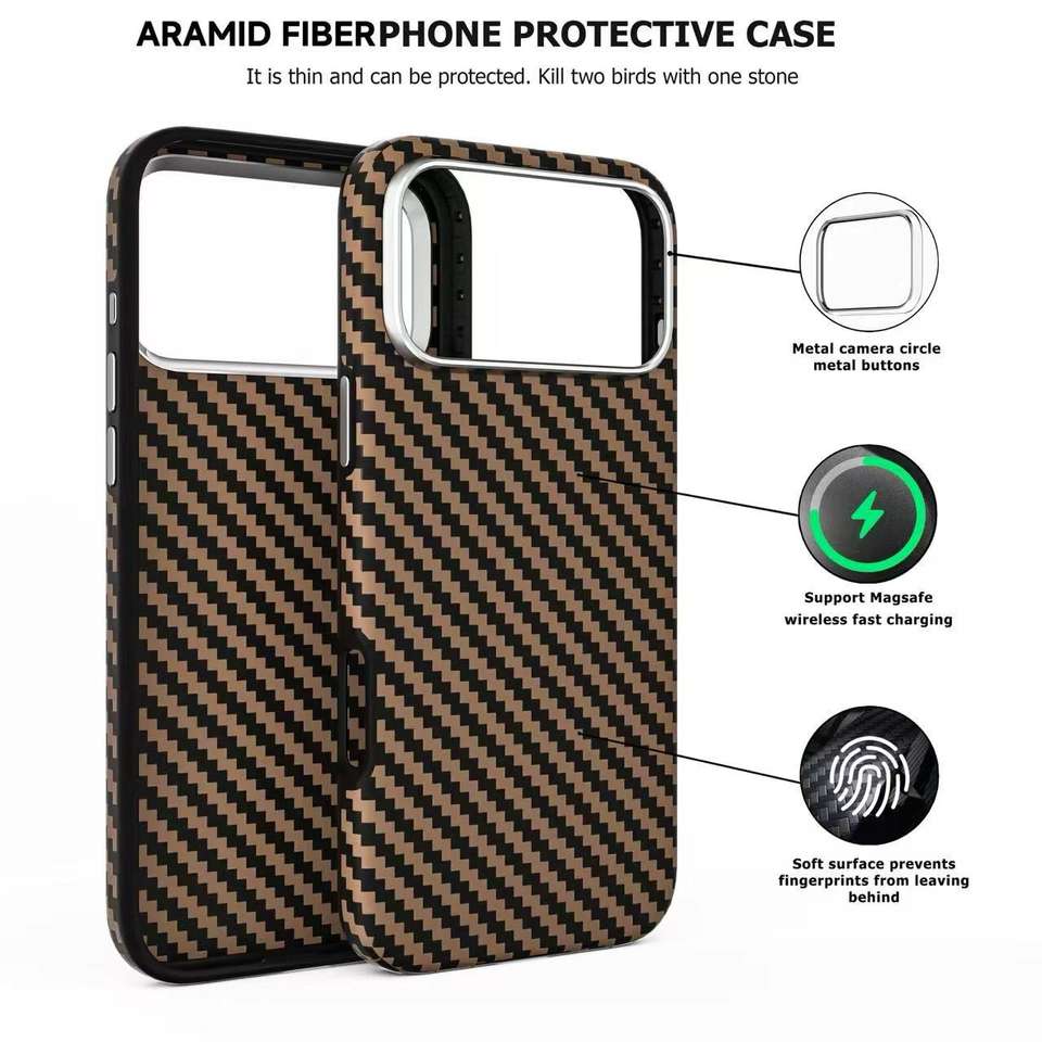 Luxury Mobile Phone Cover Black Gold Twill Magnetic Adsorption Shockproof Features TPU Phone Case for iPhone 17 Pro/Pro Max
