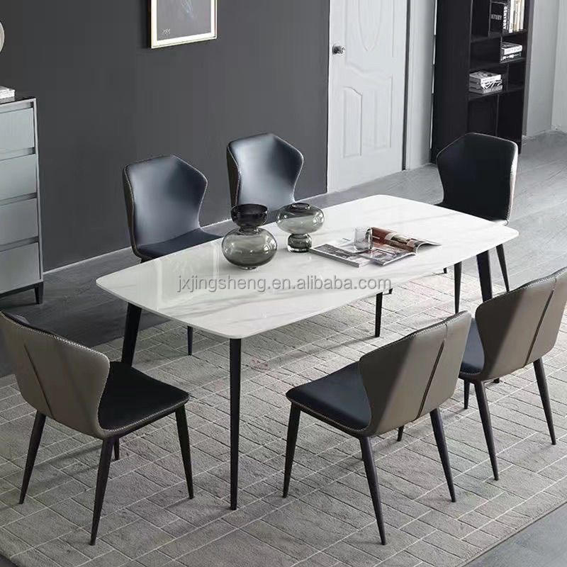 Luxury Modern 6-Seater Dining Room Set Extendable Wooden Table with Resin Marble Accents Adjustable Home Furniture for Hotels