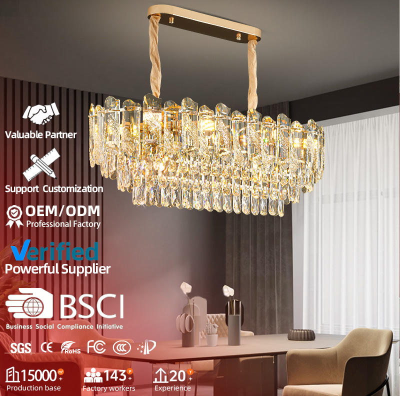 Lampadario Sospensione Moderno di Lusso in Cristallo, Ferro Dorato, LED, da Interno, Altezza Regolabile, Dimmerabile, per Isola Cucina, Bancone, Ristorante e Hotel