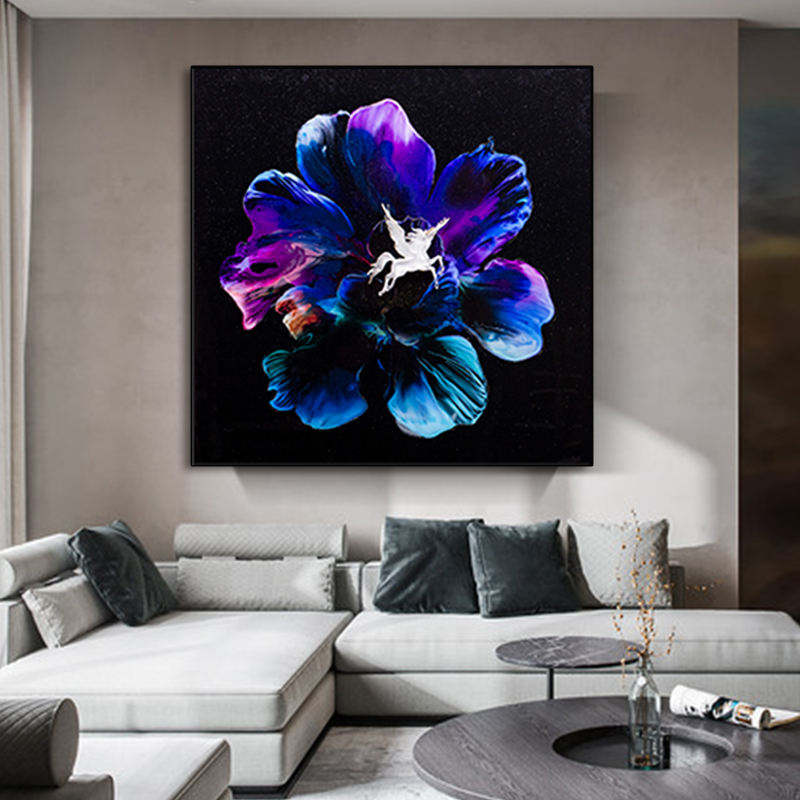 Decorazione Moderna di Lusso per la Casa, Stampa Digitale con Fiori Viola, Quadro Decorativo da Parete, Dipinto in Porcellana Cristallina con Rose e Peonie