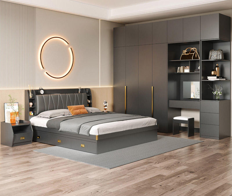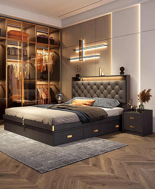 Set Camera da Letto Moderno di Lusso King Size con Contenitore, Design in Palissandro Salvaspazio
