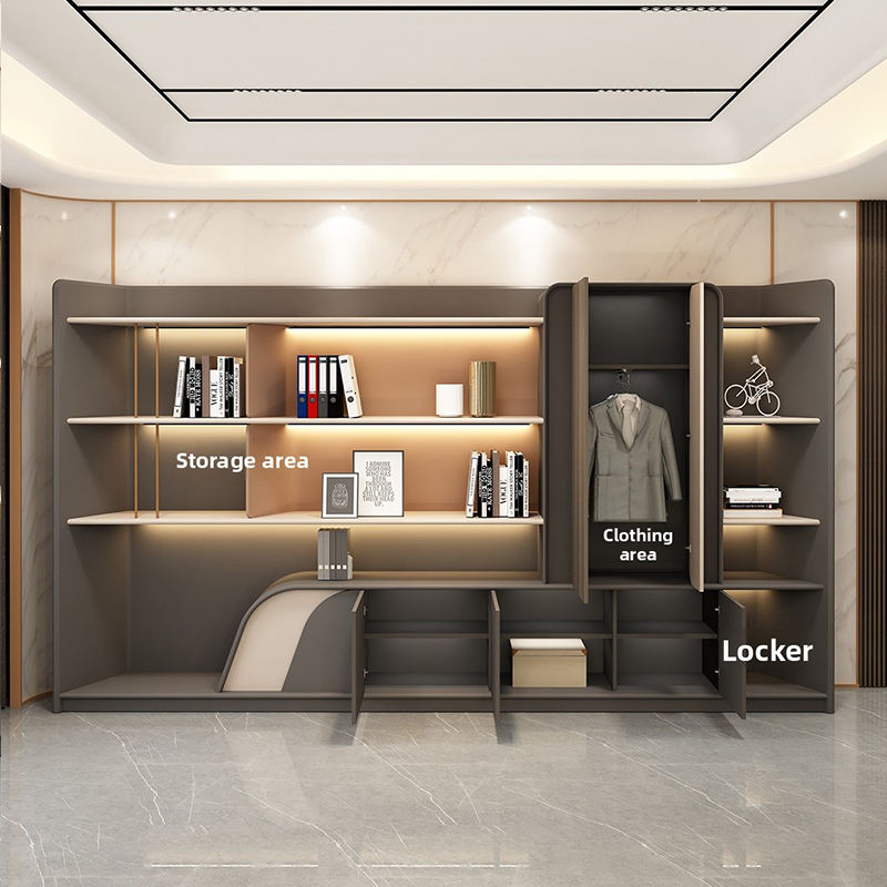 Armadio di archiviazione: L'armadio di archiviazione integrato offre uno spazio comodo e organizzato per i documenti e le forniture da ufficio, migliorando l'efficienza dell'area di lavoro.