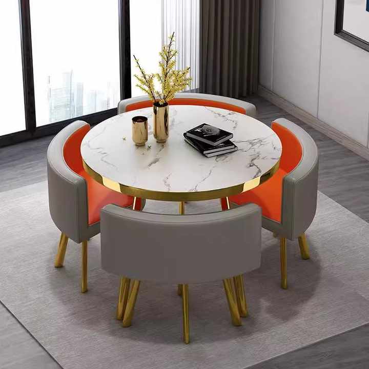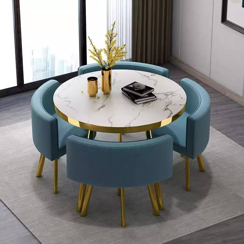 Tuochen Tavolo da pranzo moderno piano MDF/lastra di pietra, gambe metalliche, 165x100x50 cm, set 5 pz, personalizzabile