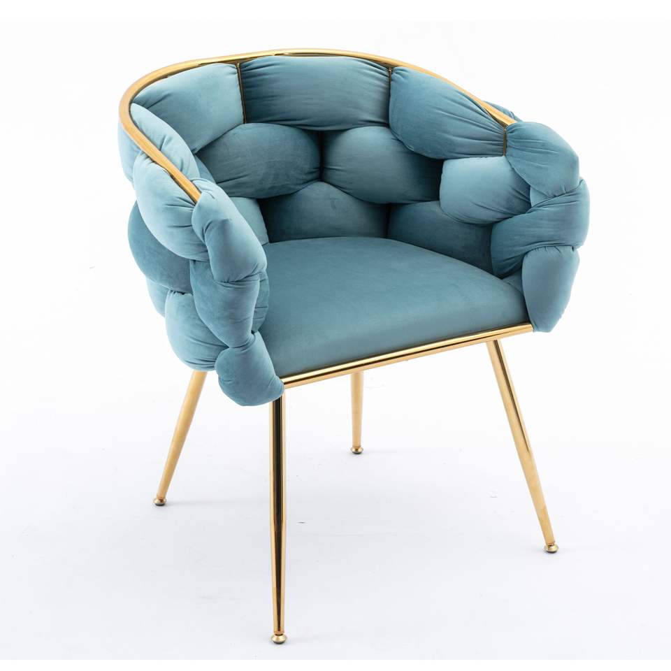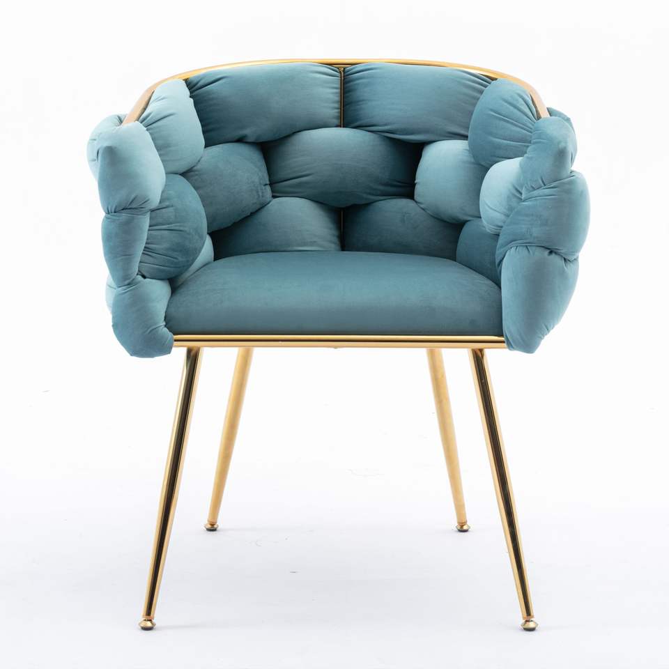 Poltrona Singola Moderna di Lusso in Velluto Blu, Semplice e Confortevole per Camera da Letto e Soggiorno, Sgabello per Toeletta e Tavolo per Manicure