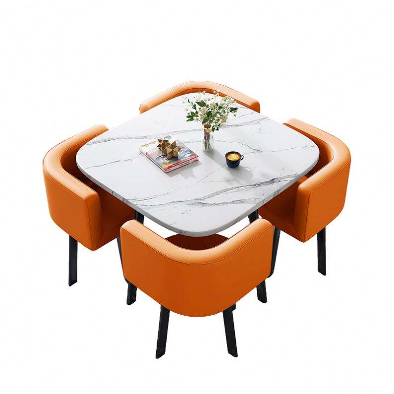 Set da Pranzo Moderno di Lusso con Tavolo Quadrato, Quattro Sedie e Un Tavolino da Caffè con Design Salvaspazio in Metallo