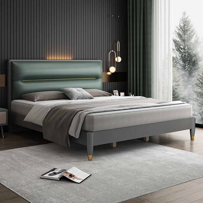 Lusso moderno bianco contemporaneo king Size camera da letto mobili verdi in vera pelle letto con Design per letti Queen